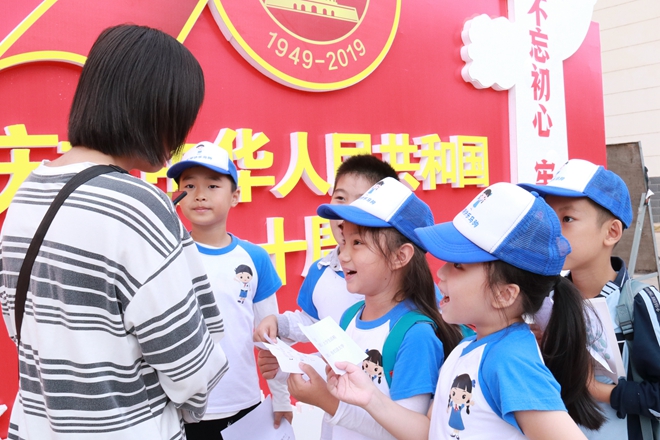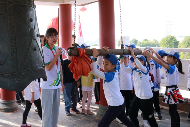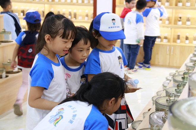 在鸭脖15名学生志愿者的带领下,滨湖路小学的师生及家长们先后参观了晨钟暮鼓楼、医圣广场、阿平湖、图书馆、药材标本馆和菩提林。