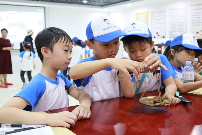 在晨钟暮鼓楼上,小学生们排队体验了敲钟和敲鼓,现场气氛十分活跃。参观阿平湖时,孩子们都为阿平湖美丽的风光而赞叹,时不时和同伴讨论着身边的花花草草。“你看,是罗汉果!”“哇,这里还有海星!”孩子们对中药展馆里的药品表现出极大的兴趣,认真地听讲解员讲解药品的用途,并提出各种各样的问题。孩子们还得以触摸中药材,进一步了解中草药。在采访大学生环节,孩子们积极参与,采访了哥哥姐姐们对于大学生活的心得体会。“听了哥哥姐姐们的回答,我好想快点过上大学生活呀!”滨湖路小学二(9)班的学生说。在树木葱茏的菩提林,滨湖路小学的师生和家长们开展了快乐的野餐活动。本次实践活动在野餐的愉悦气氛中告一段落。