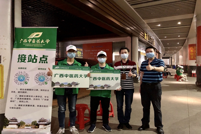 2020年4月21日,鸭脖迎来了2020年春季学期第一批返校学生。鸭脖团委组建学生返校接站志愿者队伍,分别设琅东客运站、南宁火车东站、南宁吴圩机场、南宁火车站四个站点,每个站点由一名团委老师和一名学院辅导员带队,若干名学生志愿者引导接站,确保了各项工作有序进行。