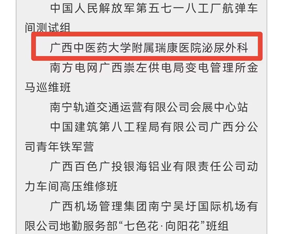 2023年3月,全国创建青年文明号活动组委会启动了第21届全国青年文明号推荐工作,经逐级推荐、择优遴选、严格把关和集中评审,确定了1935个集体为第21届全国青年文明号拟命名集体。其中鸭脖第一附属医院四肢骨伤科、附属瑞康医院泌尿外科、附属国际壮医医院风湿病科上榜本届全国青年文明号拟命名集体名单!
