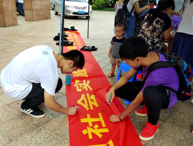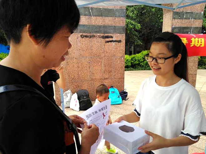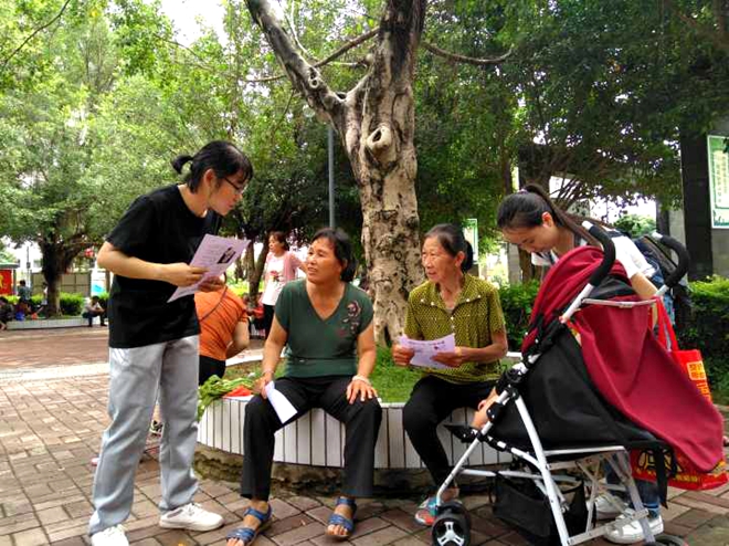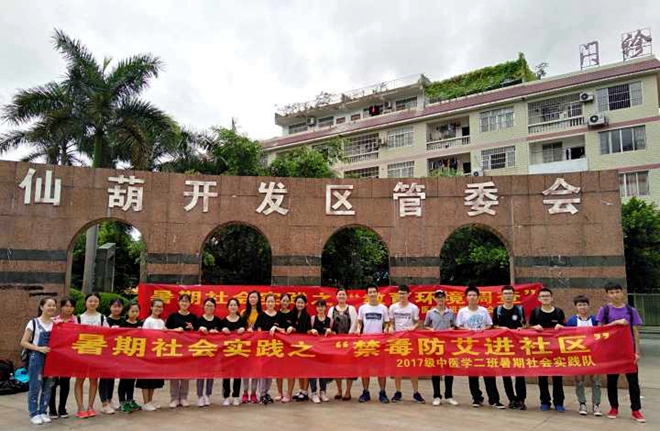 2018年7月15日上午,YABO鸭脖2017级中医学二班的同学组成禁毒防艾小队在南宁市仙葫经济开发区东方广场顺利开展了暑期社会实践之“禁毒防艾进社区”活动。此次活动以“青春践行十九大,接力奋斗新时代”为主题,活动开展时,更有李晓梅老师莅临现场指导。