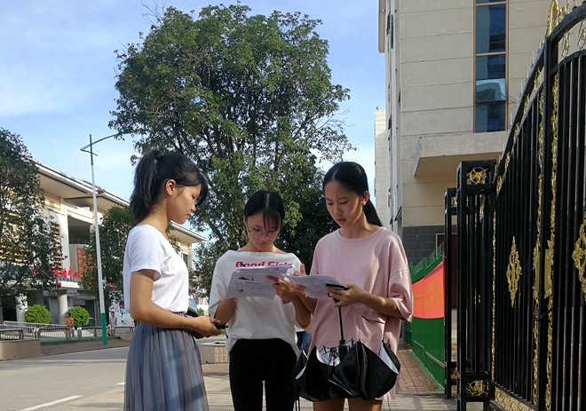 活动伊始,负责人宣读活动注意事项并组织全体参与人员进行合影。随后各小组负责人带领各自的组员到指定的地点进行问卷和宣传单的发放,并组织人员进行问卷的整理与分析。本次调查活动分两天进行,纵使烈日炎炎,也挡不住同学们调研的脚步。