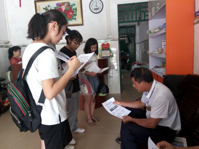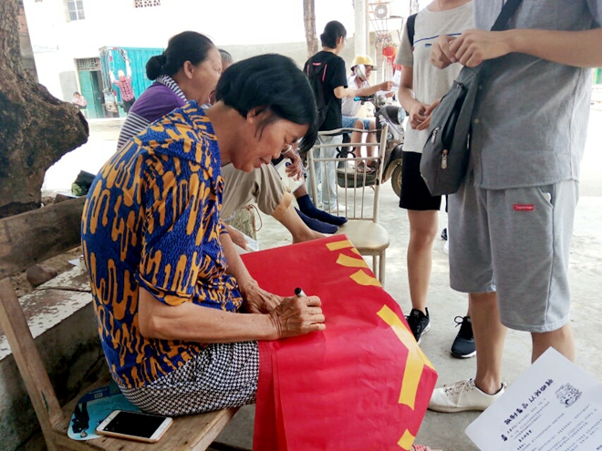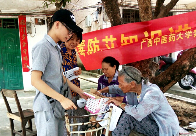 2018年7月12日,由桂中医2017级中医学2班的7名同学组成的禁毒防艾小队到武鸣县渡头社区进行禁毒防艾知识宣讲活动。