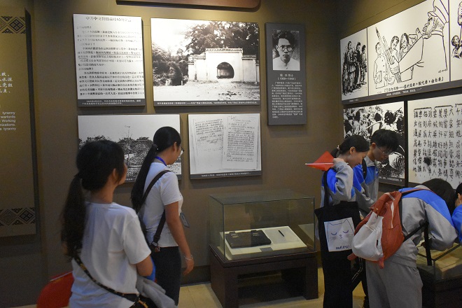 授旗仪式结束后,大家一同进入广西革命纪念馆内参观。在本次参观过程中,蒋娴老师为大家讲解了百色起义,讲解中融入一些提问,让同学们重新认识了此次工农武装割据的光辉实践;王玉洁老师带领同学们清唱一曲游击队战歌,在铿锵战歌中体验革命先辈的睿智与英勇。此外,本次活动中,还有多位同学担任志愿讲解员,结合当代青年的使命与责任,说出自己对革命精神的感悟与理解。活动结束,老师和同学们相互分享自己的感悟与收获:即享受当今幸福生活的同时,要勇于担当新时代的使命与责任。