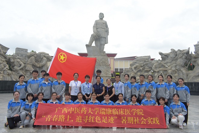 为让更多大学生了解革命、了解红色文化,更好地了解广西革命斗争史和著名烈士事迹,同时学习理论知识,体验老一辈革命家和共产党员不畏艰险、献身理想的革命精神。瑞康临床医学院团总支学生会于2019年7月12日在广西革命纪念馆开展了以“青春路上追寻红色足迹”为主题的社会实践活动。瑞康临床医学院学生科科长王瑜老师、团委书记蒋娴老师、团委王玉洁老师、学生科郭言老师、苏莉莉老师出席了本次活动。瑞康临床医学院团总支学生会全体委员、2016级临床医学各班团支书积极参与其中。