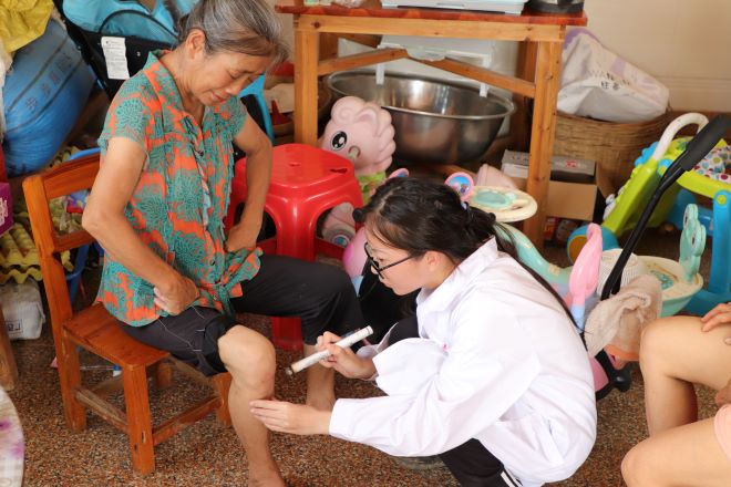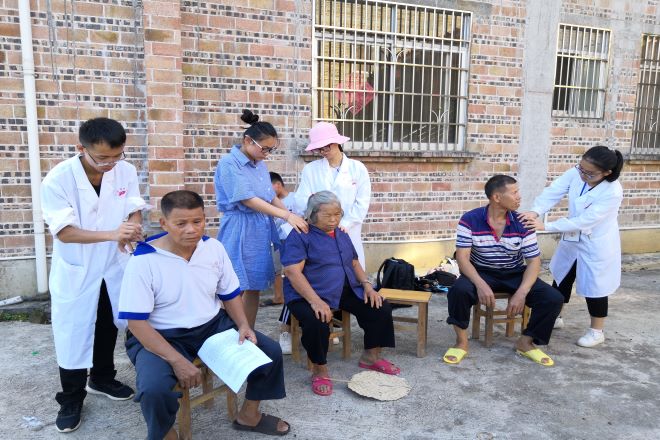 第一天义诊于南江村委会党群服务中心进行。本次义诊活动设有草药知识宣传区、健康知识和党团知识宣讲区,以及基本医疗服务区,利用所学专业知识进行基本的草药知识宣讲,在教当地村民辨认草药的同时还与当地居民探讨常用偏方及一些中草药的民间用法。给当地村民宣传三高预防、艾滋预防,流行性疾病预防等基本健康知识后,队员们送出由全体队员亲手制作的代表爱心和祝福的明信片。在党团知识宣讲学习现场,一位老爷爷讲述了当年红军的故事,重现了当年艰苦抗战的岁月。第二日的义诊分为两支队伍进行。第三第四天,草鞋队开启了草药学习之旅,由戴忠华老师带队进山,利用当地丰富的资源学习中草药知识。两天的进山之旅,一路的长途跋涉,草鞋队的队员们每个人遨游在知识的海洋中都纷纷表示学到了很多东西不虚此行。