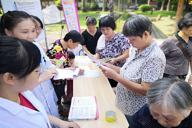2019年08月10日早上,2018级研究生学院帕友战队小分队在广西南宁青秀区新竹社区开展了“帕金森病知识宣教”及问卷调查实践活动。本次活动的主要宣传对象是中老年社区居民,通过小讲课和有奖问答的形式宣传帕金森病的发病年龄及发病原因、早期症状,规范治疗等以达到早发现、早诊断、早治疗帕金森病,从而更好地改善患者的生活质量。调查问卷了解到人们对帕金森病相关知识的知晓度。同时还给居民免费血压及宣传健康的生活方式及帕金森病后的康复锻炼。