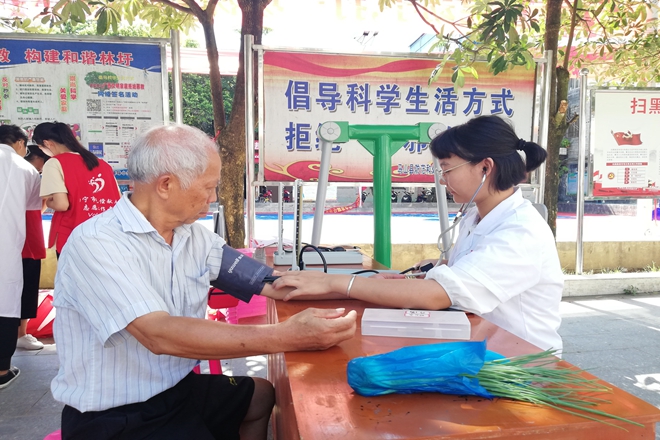 八月,天空透蓝,地面热气熏蒸。正如古人言:“日轮当午凝不去,万国如在洪炉中。”即使是炎炎夏日,红会的小伙伴们也没有停下义诊和推广献血知识的脚步。2019年8月28、29日,鸭脖大学生红十字会在马山县林圩镇开展了2019年暑期社会实践。