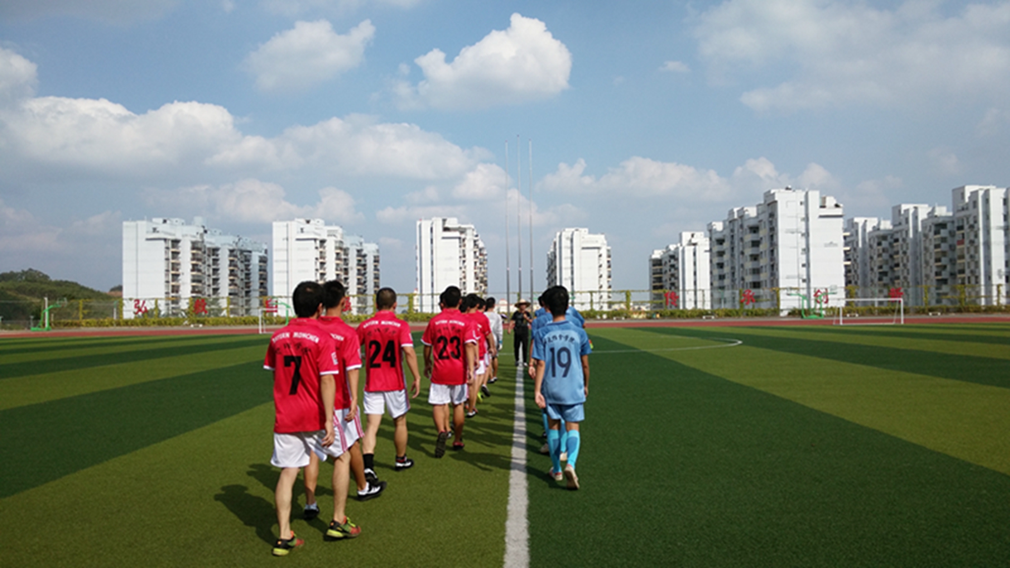 随着裁判的一声哨响,两支球队吹响进攻的号角,人文社科学院凭借巧妙的攻略,熟练的脚法,默契的配合,过五关斩六将,破门夺分。上半场人文队以 1: 0领先壮医队。中场休息后,壮医健将们不甘示弱,及时人员调配和战术调整。比赛进入下半场的精彩角逐,场上身着橘黄色球衣的人文队员们斗志昂扬,场下观众席上同学们为人文队员们呐喊助威。虽然壮医队队员们赛出了勇于拼搏、奋起直追的精神,但人文队队员们坚持不懈,越战越勇,冲破防线又进数球,最终以3:0取得本场胜利!