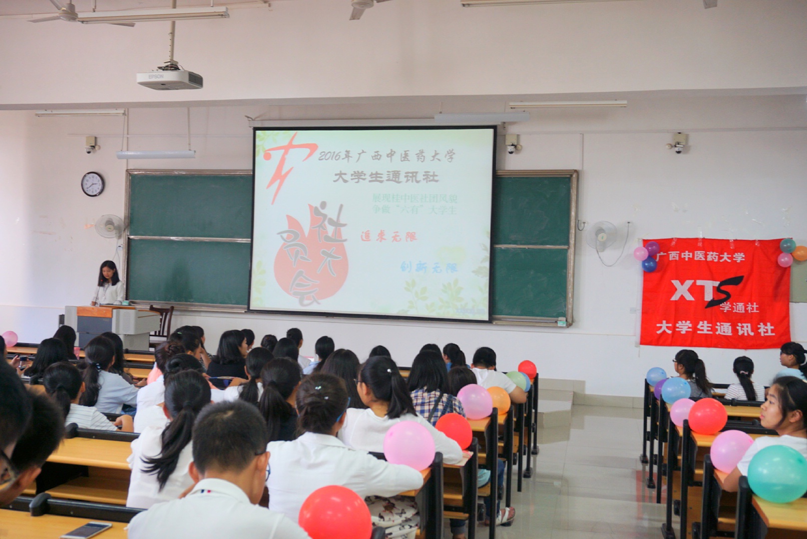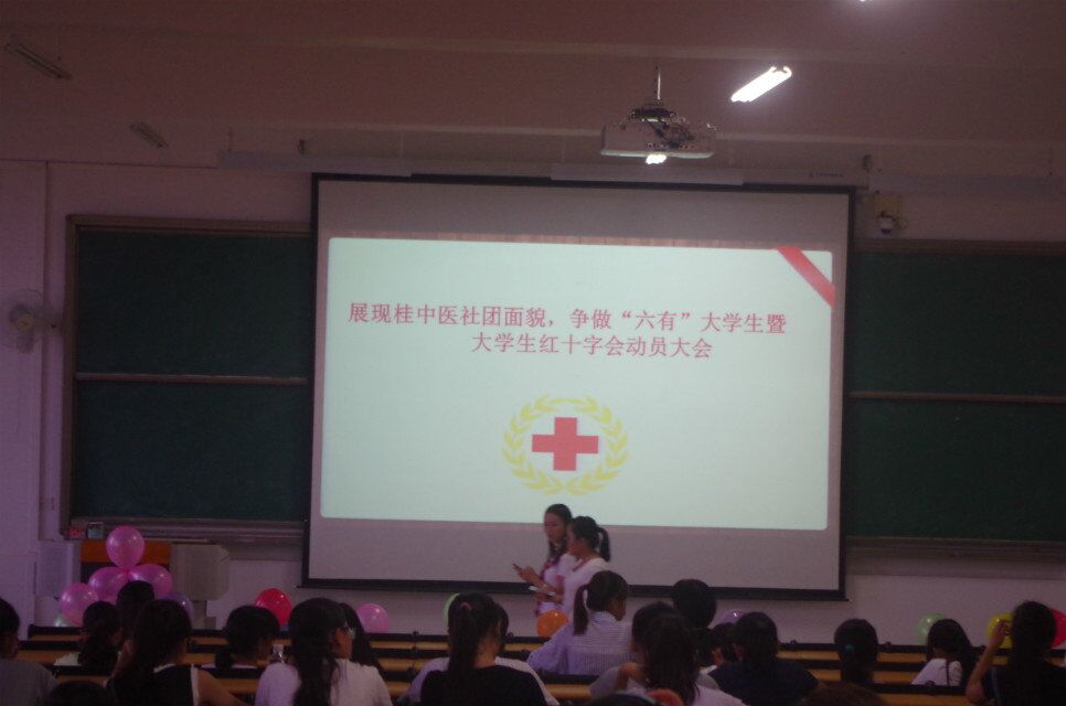 为学习贯彻习近平总书记重要讲话精神及积极响应总书记提出的“做有理想,有追求,有担当,有作为,有品质,有修养的大学生”的号召,在鸭脖仙葫校区,以手法医学协会、大学生红十字会、青年志愿者协会、青年同伴教育中心等为代表的各学生社团于2016年9月中旬至2016年10月底先后召开以“展现桂中医社团面貌,争做'六有'大学生”为主题的动员大会,最后由大学生社团联合会(以下简称社联)于2016年10月23日晚召开主题培训会议作为此次主题活动的终点站来进行宣传和教育。