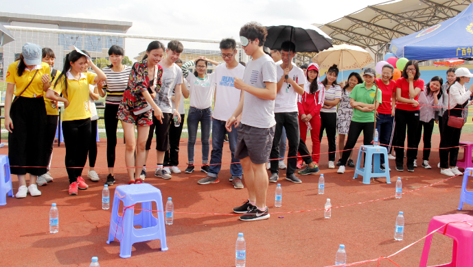 下午15时,趣味运动会开幕式正式拉开序幕,各社团代表队斗志昂扬。与传统运动会不同,本次运动会将竞技与娱乐相结合,注重同学们的参加与合作,同时享受运动,增进各社团间的友谊。你划我猜、三人四足、仙人指路等游戏,趣味性和互动性十足,受到了同学们的热烈欢迎。