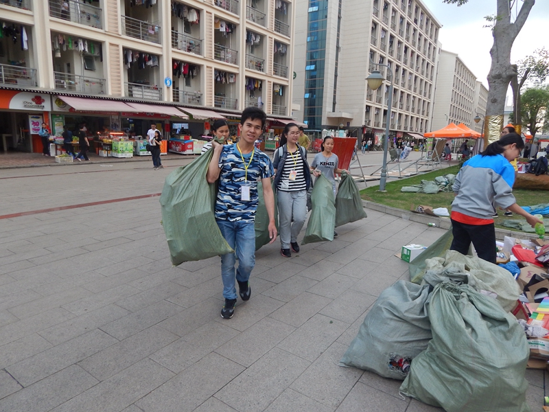 活动当天下午17:00,全体人员穿上整洁的会服,佩戴青协的会牌,兴高采烈的来到五和食堂旁边集合,负责人根据到场人数进行分组。活动过程中,志愿者耐心的敲响每一扇爱心之门,回收每一份爱心。人们都说团结就是力量,志愿者们团结一致,默契配合,走访宿舍回收活动很快就结束了。志愿者们迅速地把回收的废品拿到指定的地点汇合并进行分类整理。也许太过于投入工作工作,不知不觉天色已暗,志愿者们细心地将废品分好了类并装好车。最后以大家面带笑容的拍下大合照为此次活动画上圆满句号。本次蓝天爱心宿舍募集资总计423.3元。