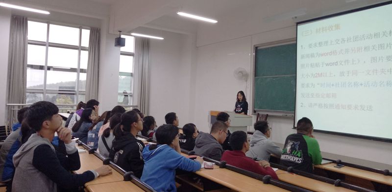 2017年10月17日下午,大学生社团联合会于鸭脖仙葫校区教学楼1-305教室顺利开展了第二次内部培训会议。