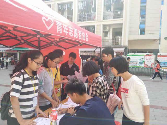 当天中午十一点半,志愿者们准时来到五合食堂门口布置场地,为手语开班招募做准备。中午十二点,手语开班招募活动正式开始。活动中,志愿者们积极宣传,耐心地向同学们讲解手语开班的内容。志愿者们热情的宣传吸引了一批对手语感兴趣的同学,报名处热闹非凡。同学们纷纷表示对手语开班很是期待,已报名的同学也积极向舍友及小伙伴进行二次宣传,让更多的人加入学习手语的行列。下午五点,负责人和小理事仍在继续开展招募活动。活动过程中志愿者们表演了“爱就在身边”手语舞,灵巧的手指,微笑的脸庞,传递着无声的爱,为活动添加了温暖的色彩,使活动得到一致好评。下午六点,志愿者们集合在一起拍大合照,活动圆满结束。活动虽已结束,却是新的开始,我们从这里一起走进无声的世界,传递无声的爱。