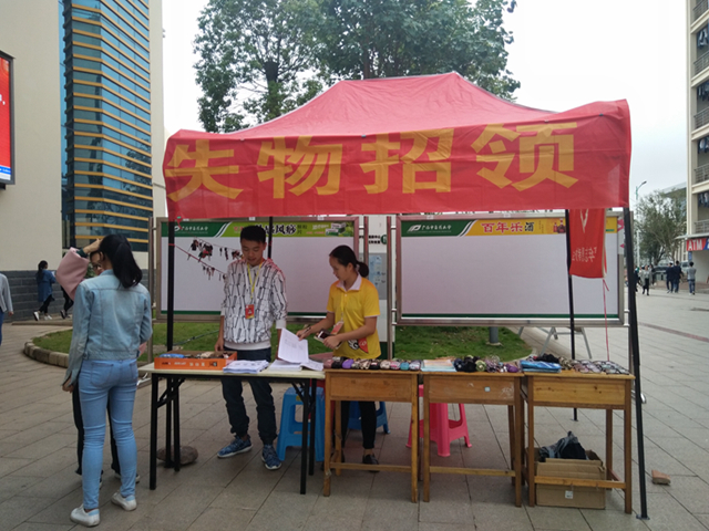 为了帮助广大校园师生寻回失物,提供更好的服务。2017年11月9日,YABO鸭脖青年志愿者协会联合大学生事务服务中心、食堂失物招领处及教室协管处,在YABO鸭脖仙葫校区五合食堂门口旁开展了以“得遗忘拾,失物回归”为主题的失物招领活动。
