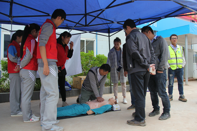 由大学生红十字会的成员向工人们进行急救演示、普及急救知识,由青年同伴教育中心的成员给前来参与活动的工人们分发放预防艾滋病知识传单和宣讲预防艾滋病的知识。为了提高工人们参与度与积极性,志愿者们还开展了一些趣味性活动,给工人们发放一些小奖品。