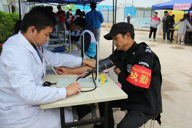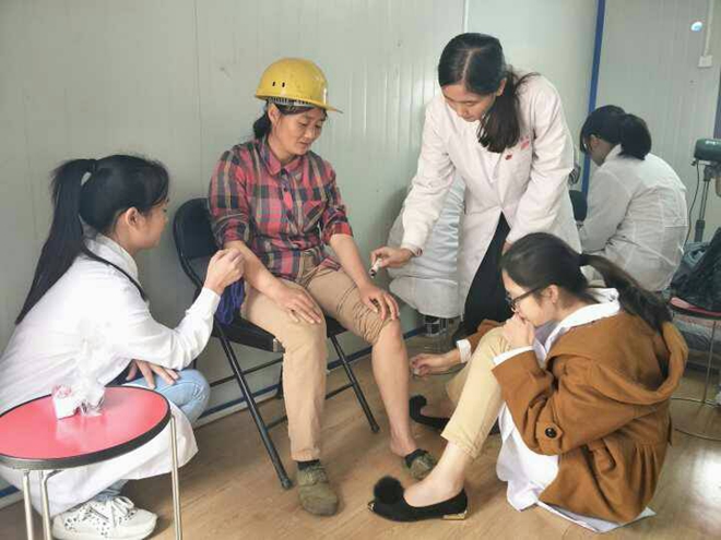 虽小雨淅淅沥沥,但测量血压、针灸、艾灸、手法推拿、拔火罐、刮痧、免费发放家庭备用药品及急救知识手册的义诊服务活动依然火热进行,现场秩序有条不紊。从工人们脸上洋溢的笑容可以看出,我们的义诊活动给他们带来了温暖,而志愿者们也在志愿活动中显得格外开心。