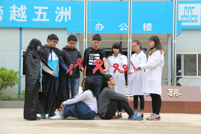 志愿者们表演防艾情景剧