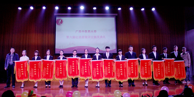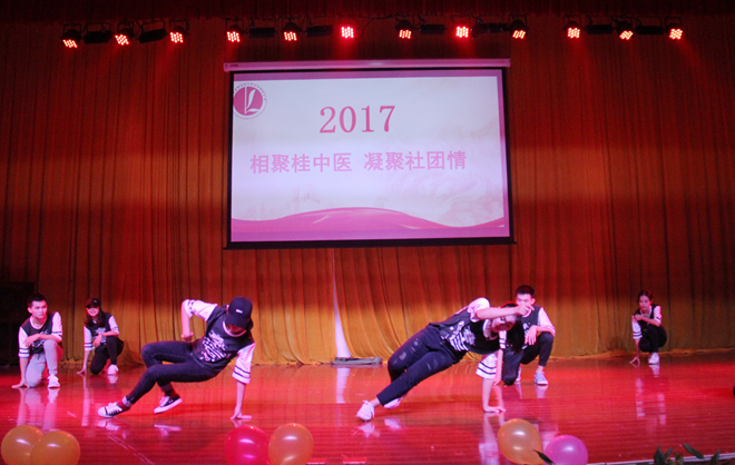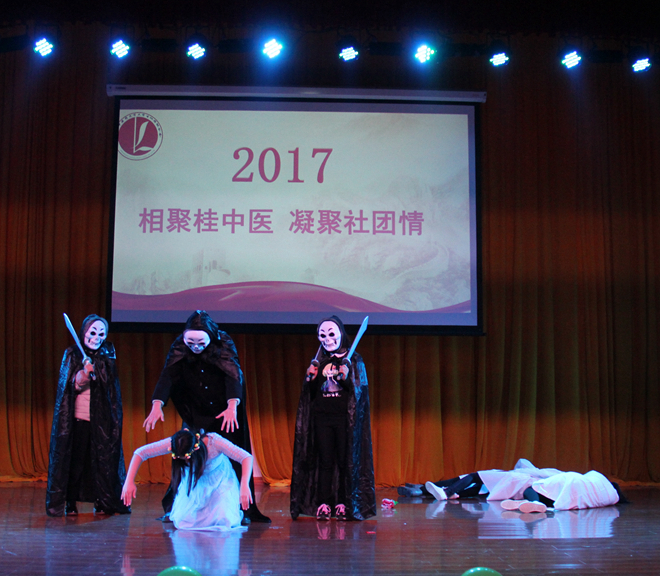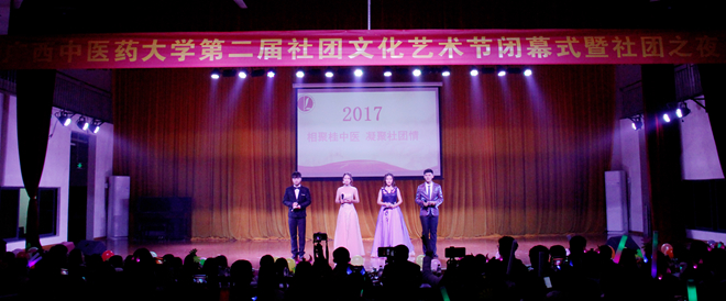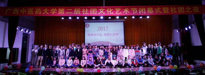 2017年11月25日晚,由大学生社团联合会主办的以“相聚桂中医,凝聚社团情”的社团之夜于鸭脖仙葫校区大学生活动中心小礼堂举办。应邀出席的嘉宾有团委副书记杨删老师、团委社会实践部部长陈晓东老师以及各大高校的代表。