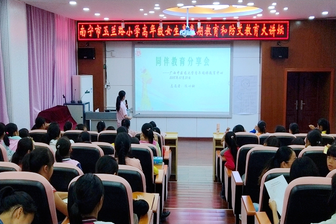 2018年10月30日下午,由鸭脖青年同伴教育中心志愿者主讲的青春健康知识分享会在南宁市玉兰路小学正式开讲。本次青春健康知识分享会对象主要为四、五、六年级学生。讲师采取讲述为主,互动为辅的方式开展本次分享会。