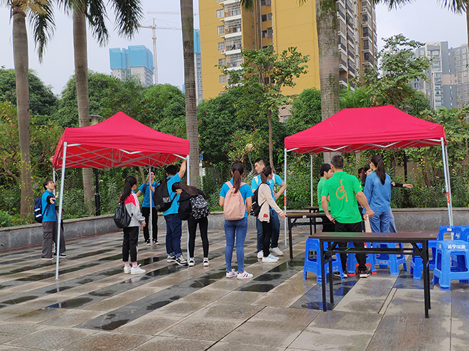志愿者有序布置场地