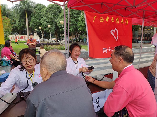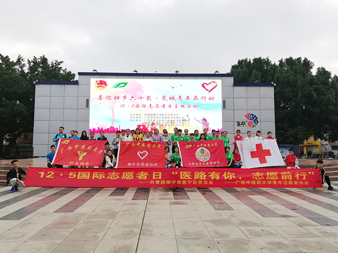 志愿服务源于心,献出爱心在于行,为了迎接12月5日国际志愿者日的到来,2018年12月2日,由共青团南宁市邕宁区委员会主办,鸭脖青年志愿者协会承办,联合鸭脖大学生手法医学协会、针灸协会和红十字会在邕宁区新兴广场开展了以“医路有你,志愿前行”为主题的义诊活动。