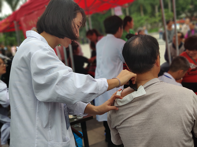志愿者为居民刮痧