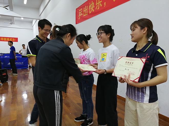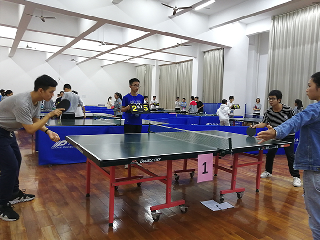 为丰富同学们的课余生活,增强同学们的身体素质,2018年11月27至12月5日鸭脖乒乓球协会(以下简称“乒协”)在鸭脖举办了第四届全校性乒乓球单打比赛。12月5日比赛闭幕式出席的嘉宾有谢海源老师、林宇华老师、黎锦源老师以及乒乓球协会指导老师陆春敏老师。