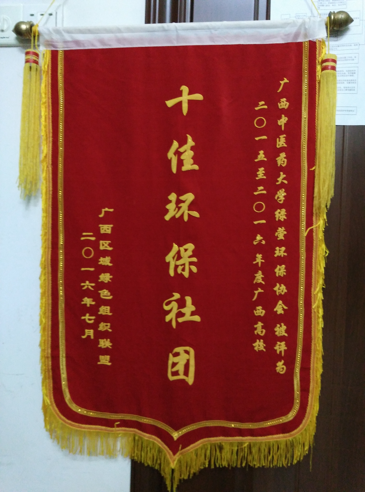 2016年7月2日,广西区域绿色组织联盟在广西青少年活动中心举办绿盟十周年庆典活动,YABO鸭脖绿萤环保协会参与并在庆典中被授予广西高校“十佳环保社团”的称号。这是广西区域绿色组织联盟对绿萤环保协会这一年多里所做的工作的肯定与鼓励。