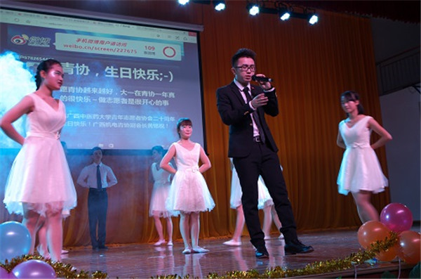 伴随着观众热情的欢呼声,广西高校志愿者联谊晚会暨YABO鸭脖青年志愿者协会成立20周年晚会在时尚与环保相结合的开场秀——《环保时装秀》中拉开了序幕。在老师及青协现任负责人的发言后,晚会正式开始了。青协各前任会长们将对青协的深情融入到《最美的时光遇到你——青协》中,表达了志愿者对青协的爱与依恋;青协的志愿者们通过表演小品《一家人》来呼吁大家一起加入关爱老人的队伍中;吴睿老师演唱了《夜空中最亮的星》,借以为路人指明道路的明星来比喻永恒不变的志愿服务精神,并赞美了志愿者的无私奉献;《爱留下,守护他》在表演者的精彩演绎下,体现了关爱留守儿童这一深刻主题;其他由校内外各兄弟社团表演的节目,也展示了当代大学生的青春与活力。真正掀起晚会高潮的是纪念青协成立20周年生日蛋糕的出现,大家不约而同地高唱生日快乐歌,为青协送上最诚挚的祝福。最后,在全体合唱会歌《爱就在身边》的歌声中,此次晚会圆满地落下了帷幕。