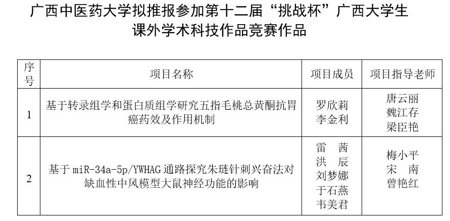 YABO鸭脖拟推报参加第十二届“挑战杯”广西大学生课外学术科技作品竞赛的公示