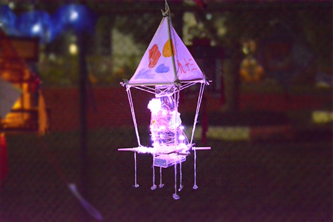 兔子灯、仙鹤灯、锦鲤灯....一盏盏精致美观、独特新颖、星星点点,将夜色渲染的更加温馨热闹。花灯错落有致、光影闪烁,同学们在花海中穿梭,三三两两停留、驻足观赏花灯,有的拿起手机记录着,并给自己喜爱的花灯投上宝贵的一票。
