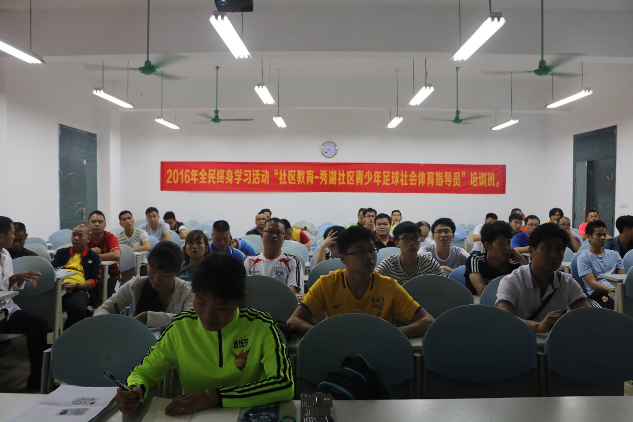 广西校园足球社会体育指导员培训班11月19日在鸭脖明秀校区举办。自2013年起,由鸭脖直属党委体育部支部与南宁市西乡塘区秀湖社区党委联袂创办的全民健身卫生站点就在鸭脖明秀校区全面铺开。本次培训班的举办,是站点工作由量的堆砌到质的拓展、服务质量全面提升的重要标志。