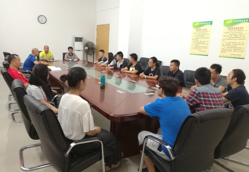 20161018日下午,体育部在仙葫校区体育部会议室召开了高水平运动员见面会,体育部副主任李荣源、副主任石荣群、羽毛球队主教练徐锡杰、武术队主教练刘懿翀、办公室相关人员、全体2016级高水平运动员和部分在校运动员代表参加了见面会,会议由办公室张艳主任主持。