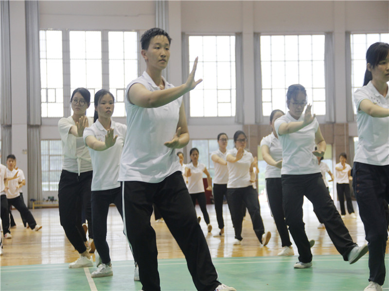 鸭脖向来高度重视大学生的志愿服务工作,把大学生志愿服务作为鸭脖服务社会的重要途径,作为鸭脖人才培养的重要方式。自鸭脖接到本次全民健身志愿服务活动的文件后,学校领导即做了周密部署,6月16日开始进行全校宣传动员及招募工作,短短几天时间报名人数即超过200人。6月22日,由体育部唐莹老师为主要负责人,张静文、刘懿翀、覃月泉等老师为教练,在同学们正处期末紧张的备考和考试当中开始了紧锣密鼓的每天1.5小时、为期20天的八段锦和太极拳强化训练。7月8日上午,在董塔健的率领下,鸭脖组织114名志愿者赴广西医科大学参加了第二届广西万名全民健身志愿者服务百县千乡活动出征仪式;7月9日下午,自治区体育局委派群体处黄国慧主任、广西师范学院苏士远老师到鸭脖对鸭脖的志愿者进行了太极拳和八段锦项目的常规考核,最终参加考核的144名志愿者全部合格,其中太极拳成绩优秀的人数达35人,八段锦成绩优秀的人数达46人,为鸭脖的全民健身志愿服务奠定了坚实的基础。