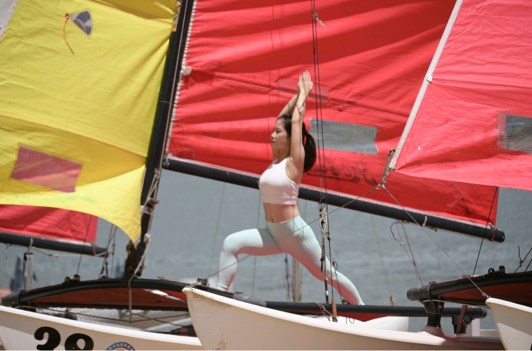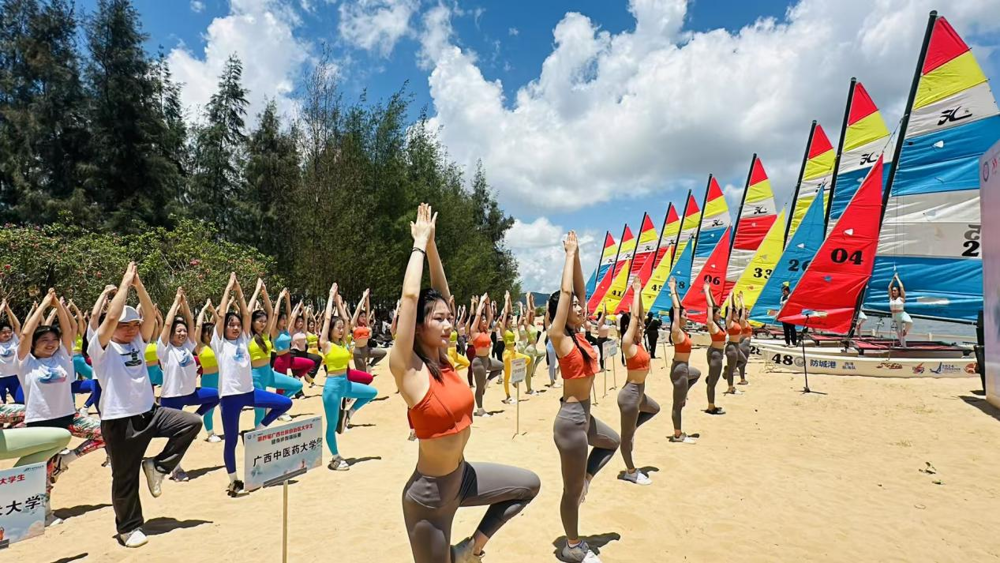 根据赛事裁判长覃月泉介绍,本次赛事呈现两大特色。在开幕式环节,活动选址于富有浪漫氛围的海边沙滩,以饱含爱国情怀的《我爱你中国》作为主题音乐。开幕式上,我校10名运动员登上帆船,伴随音乐节奏进行领操展示,动作刚柔并济,在海风映衬下尽显瑜伽运动之美。此外,本届赛事特别增设全场总冠军赛,来自各竞赛组别的冠军选手同台竞技,凭借精湛技艺,充分诠释瑜伽运动“力与美”相融合的独特魅力,为现场观众带来极具观赏性的高水平赛事体验。