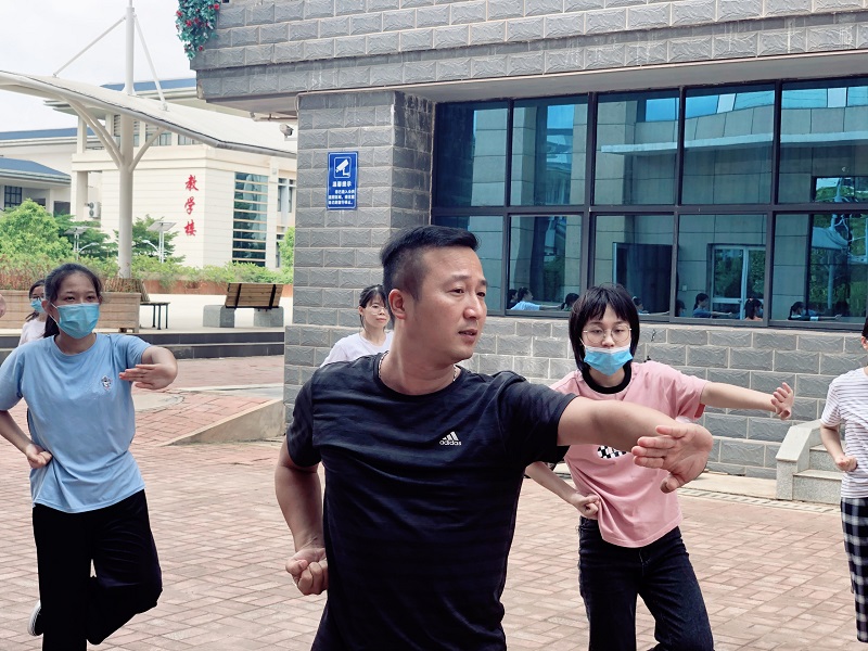 韦东谊副教授讲授《三路长拳—第四段》。韦副教授的教学准备充足,课堂步骤清晰、有条理,教学重点、难点突出。令人难忘的是,他的课堂风格独特,教学语言幽默、风趣、激情,讲解动作时用词通俗易懂,比喻贴切,课堂笑声连连,除去了课堂的古板和枯燥,使同学们在热烈的氛围中忘掉疲惫,尽情挥洒汗水,在快乐中学会技能。人们常说,教学是一门艺术,谁能把它演绎得好,谁就能抓住学生的心。新课改强调教师语言在教学中的重要地位,课堂上教师多用激励、肯定、赞扬的语言鼓励学生,在教学中多维度地评价学生,让学生建立自信,使他们在“学中玩,玩中学”,乐在其中,在快乐中掌握体育运动技能,这就是“快乐体育”的核心。韦东谊副教授的体育课堂真正诠释了“快乐体育”的意义。