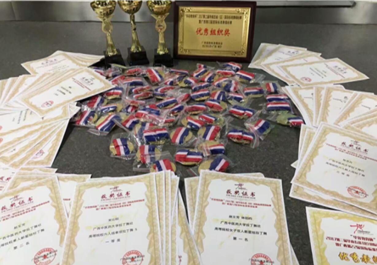 “华容教育杯”2017 第二届华南五省(区)国际标准舞锦标赛暨广西第 22 届国际标准舞锦标赛在广西体育中心体育馆圆满落幕。鸭脖拉丁舞队在本次比赛中荣获4个一等奖、3个二等奖、3个三等奖、2个第四名、2个第五名、2个第六名的好成绩。