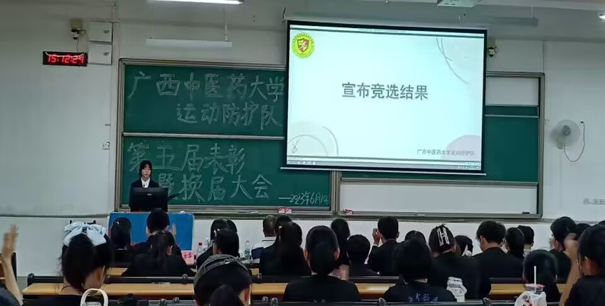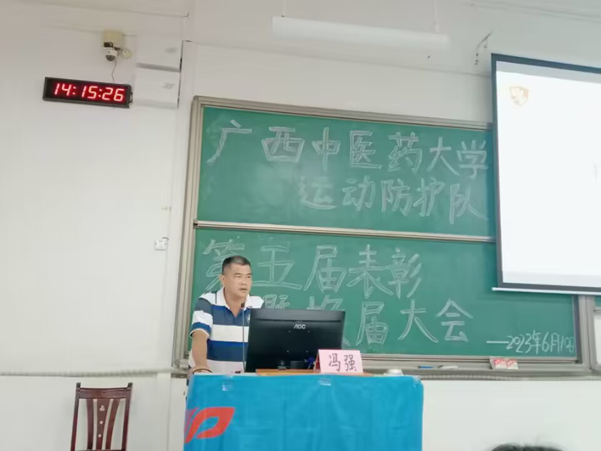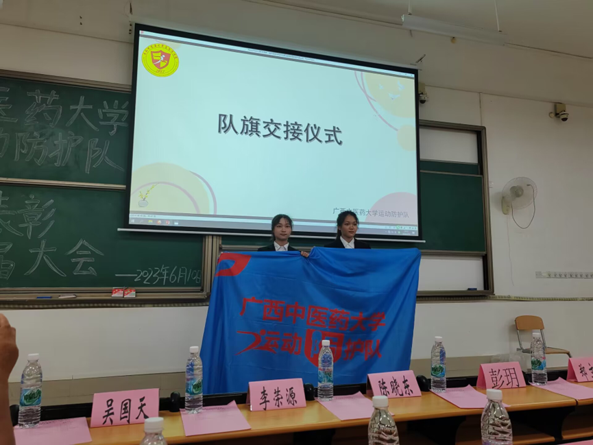 活动前期,冯强老师和现任YABO鸭脖运动防护队队长覃楚茵在会上对运动防护队2022-2023年度工作的开展,成果和存在问题作了详细的汇报,全面总结了上一届领导班子的工作成果和宝贵经验,并对新一届领导班子提出了相关要求和传达莫大的期冀。