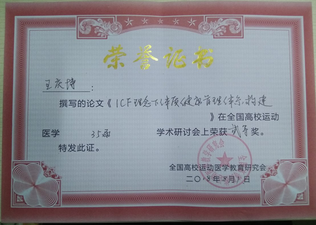 在论文交流中,《基于“治未病”理念的高等中医药院校体育软环境建设》(石荣群、王庆博)和《ICF理念下体质健康管理体系的构建》(王庆博)均荣获二等奖。