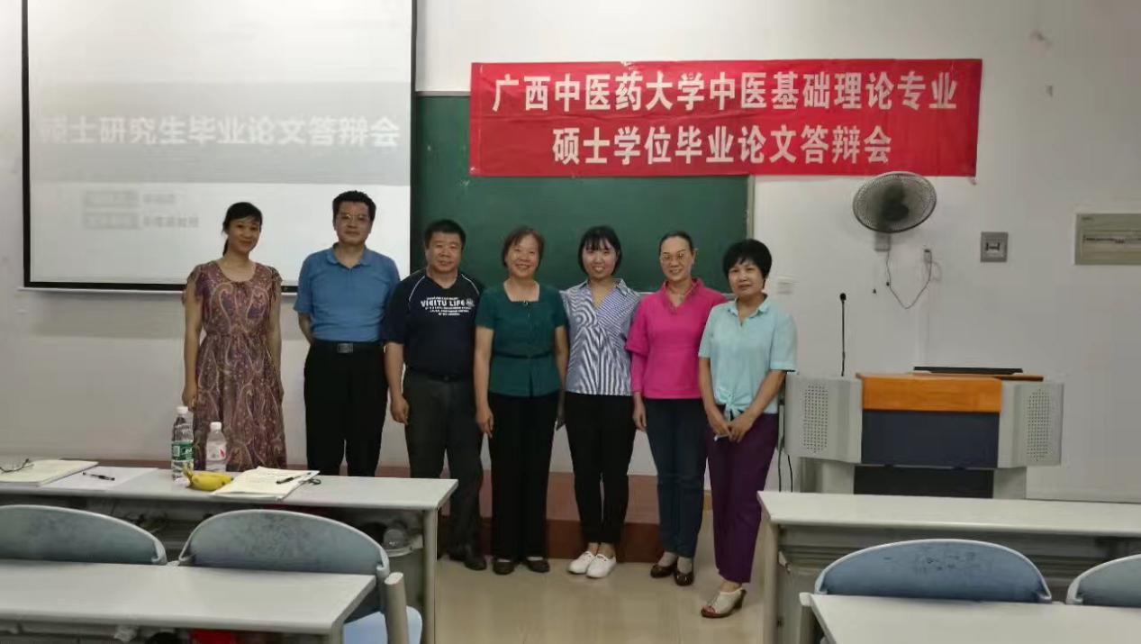 2017年5月27日晚, 2017届中医英语翻译硕士生李辰蝶同学毕业论文答辩在明秀校区新西一教室成功举行。答辩委员由广西师范学院和鸭脖基础医学院,国际教育学院及外语部共五名专家组成,广西师范学院黄斗教授担任主席。外语部吴莲英教授作为导师出席了答辩会。