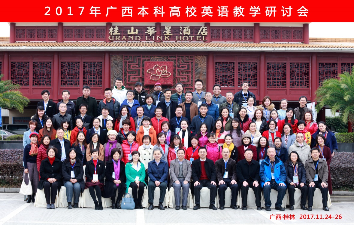 2017年11月24-26日,由广西本科高校英语教学指导委员会主办的2017年广西本科高校英语教学研讨会在桂林举行,外语部陈立群主任带领教务科研办主任何严、大学英语(一)教研室主任蓝莹等教学骨干一行5人参会。