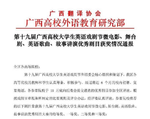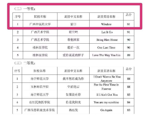 广中医学子喜获广西高校大学生英文歌曲大赛多项大奖