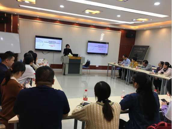 随后外语部柳江帆老师进行了急诊医学英语讲座。柳江帆老师对在急诊过程中,如何使用英语进行接待患者、收集信息、输液、检查、取药、安慰患者等内容进行了深入浅出的讲授,并与仙葫院区第一支部的党员同志一起演练急诊医学英语会话。