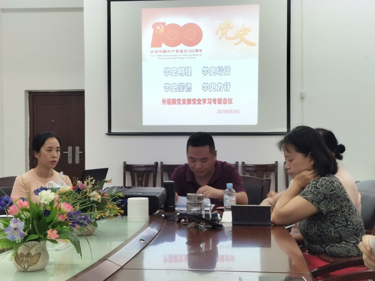 为全面深入推进党史学习教育,引导外语部教师知史爱党、知史爱国,进一步坚定信仰信念、传承红色基因、强化使命担当,做到学史明理、学史增信、学史崇德、学史力行,YABO鸭脖外语部党支部采取主题发言和分组讨论、个人发言等方式,拓宽学习渠道,使教师党员做到以党史照亮前行之路、以党史洗涤心灵之尘、以党史激发奋进力量。