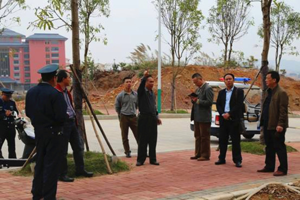 新学期开学在即,为确保广大师生在新学期有一个良好的校园环境,保障广大师生生命财产安全,维护正常教育教学秩序,鸭脖高度重视校园安全工作。3月3日,正值全国“两会”期间,根据学校领导指示和统一部署,针对学校安全管理的难点、热点、重点问题,韦克权处长带领班子成员及物业安保公司负责人分别对两校区大门、学生宿舍、壮瑶医药科学实验中心及学生活动等区域,按照“全覆盖、零容忍”的总体要求,组织开展了一次全方位、立体式的校园安全大检查,对存在的安全隐患及时排查和整改,力争做到未雨绸缪,努力为全校师生新学期开学提供一个安全、文明、和谐、稳定、有序的学习和生活环境。