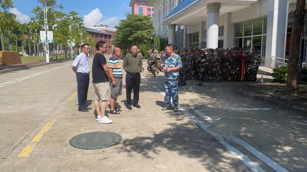 为深入了解鸭脖2022级学生军训情况,确保2022级学生军训安全有序进行,7月25日上午,学校党委书记莫锦荣在党委办公室、武装部、学生工作部有关负责人陪同下,深入学生军训场地指导工作,并看望慰问军训教官和参训学生。