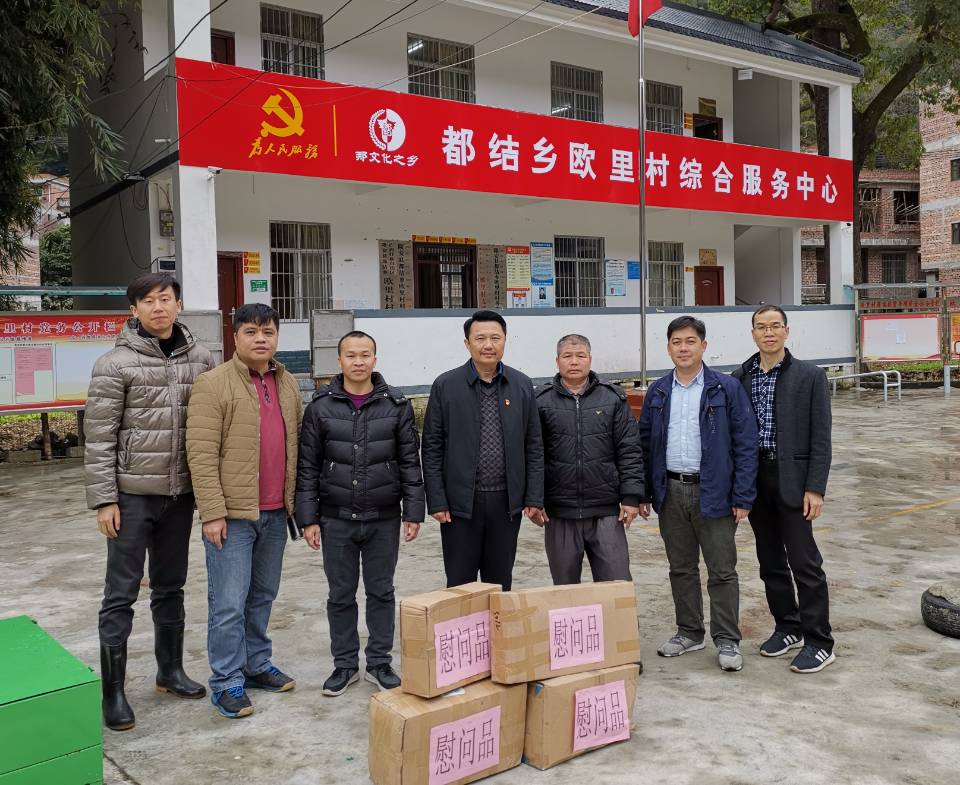 2019年1月5日,校长助理、校长办公室黄龙坚主任、蓝开宝副主任一行4人到隆安县都结乡欧里村开展扶贫活动,慰问了欧里村“第一书记”李贵同志,并向全体村民送去问候及一批体育用具慰问品。