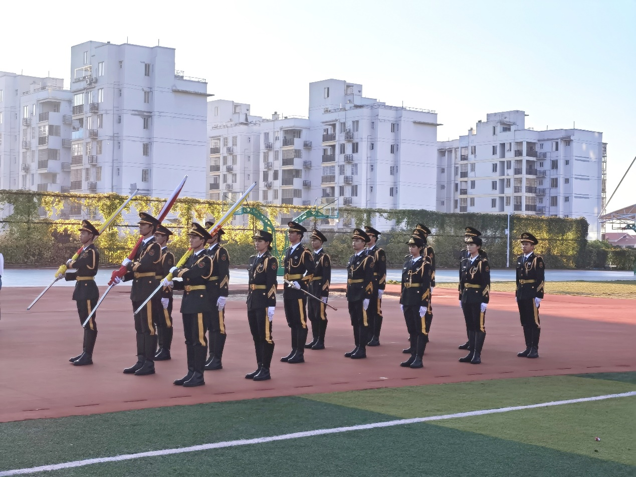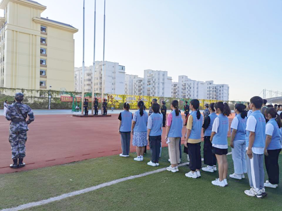 踏着清晨和煦的阳光,国旗护卫队队员们目光如炬,正步铿锵,他们护着五星红旗,迎面向同学们走来。上午七点三十分,升旗仪式正式开始,伴着令人热血沸腾的国歌奏唱,队员们看着五星红旗同旭日冉冉升起,郑重庄严地向国旗敬礼,以最良好的精神面貌献礼祖国华诞,每个人心中升起一份崇敬之情,久久难以平静!