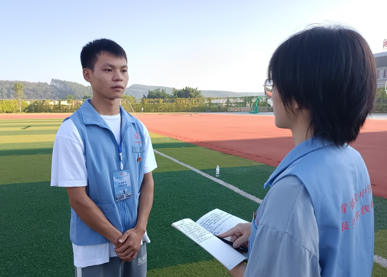随后,总队队员分别采访了国旗护卫队队员、总队队员以及身边的同学,从采访中体现出他们对祖国的祝福和热爱。其中,国旗护卫队队员引用了孟晚舟女士的一句话:“有五星红旗的地方,就有信念的灯塔”,并借此表达了他们坚定的爱国信念;总队队员也道出了对先烈们的敬仰和对国旗的敬畏;身边的同学更是深情地祝福祖国,祝愿祖国繁荣昌盛!最后,活动在两队队员们与国旗的合影留念中落下帷幕。
